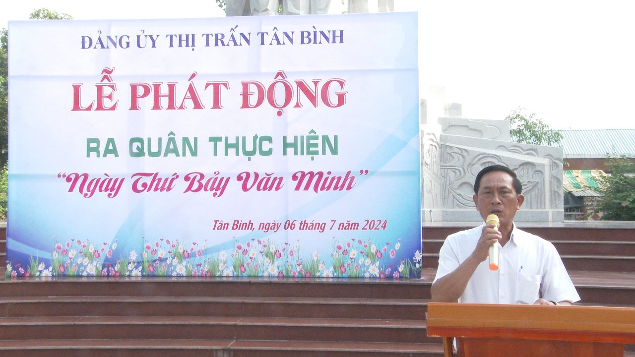Phát biểu tại lễ phát động, ông Huỳnh Văn Tùng, Phó Bí thư Đảng uỷ-Chủ tịch UBND thị trấn Tân Bình cho biết: Lễ phát động thực hiện Ngày thứ bảy văn minh được tổ chức với mong muốn tạo ra sự chuyển biến tích cực, mạnh mẽ trong nhận thức, hành động và phát huy vai trò tiên phong gương mẫu của đảng viên, cán bộ, công chức, viên chức, đoàn viên, hội viên và sự tự giác, tự nguyện của từng cá nhân trong việc thực hiện nếp sống văn hoá-văn minh nơi công sở, nơi cư trú và nơi cộng đồng, tạo ra các phong trào thi đua sôi nổi, thiết thực, hiệu quả, tạo sự lan toả trong mọi tầng lớp nhân dân, góp phần xây dựng thị trấn Tân Bình phát triển ngày càng bền vững, văn minh, hiện đại.