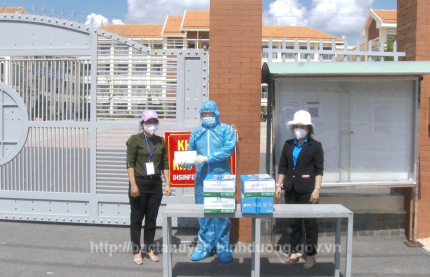 Liên đoàn Lao động huyện Bắc Tân Uyên tặng quà, động viên cán bộ, chiến sĩ các khu cách ly tập trung