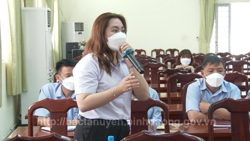 Đoàn viên công đoàn phát biểu đóng góp xây dựng tại Hội nghị