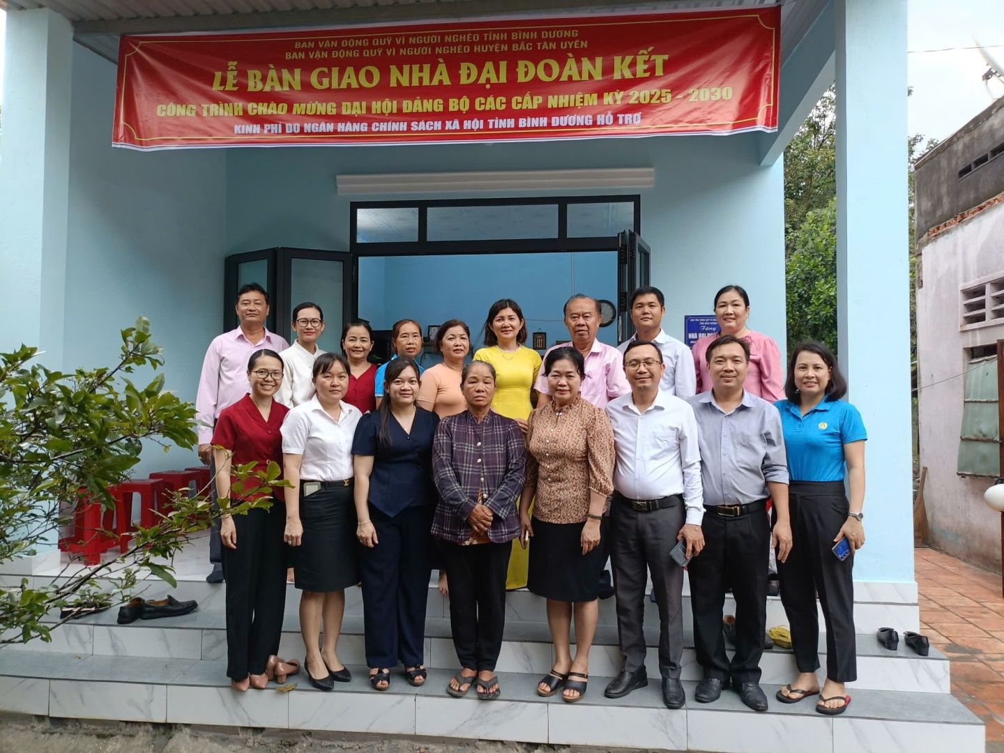 Chiều ngày 27/12, UBMTTQ huyện Bắc Tân Uyên phối hợp cùng UBND xã Bình Mỹ tổ chức Lễ bàn giao 2 căn nhà “Đại đoàn kết” cho người dân có hoàn cảnh khó khăn về nhà ở trên địa bàn xã Bình Mỹ. Đến dự buổi trao nhà có Bà Trần Thị Kim Lan - Phó Chủ tịch UBMTTQ tỉnh Bình Dương; ông Võ Văn Đức - Giám Đốc Ngân hàng Chính sách xã hội tỉnh; ông Nguyễn Ánh Linh - Phó Chủ tịch UBMTTQ huyện; ông Bùi Quang Tuấn - Giám Đốc Ngân hàng Chính sách xã hội huyện; lãnh đạo Đảng ủy-HĐND-UBND-UB MTTQ VN và các ngành, đoàn thể xã Bình Mỹ.