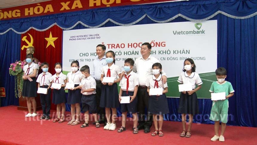 Tại chương trình, đại diện Ngân hàng Vietcombank Chi nhánh Đông Bình Dương đã trao 100 suất học bổng, mỗi suất học bổng trị giá 1 triệu đồng cho các em học sinh có hoàn cảnh gia đình khó khăn, phấn đấu vươn lên đạt thành tích cao trong học tập và rèn luyện đạo đức tốt trên địa bàn huyện.