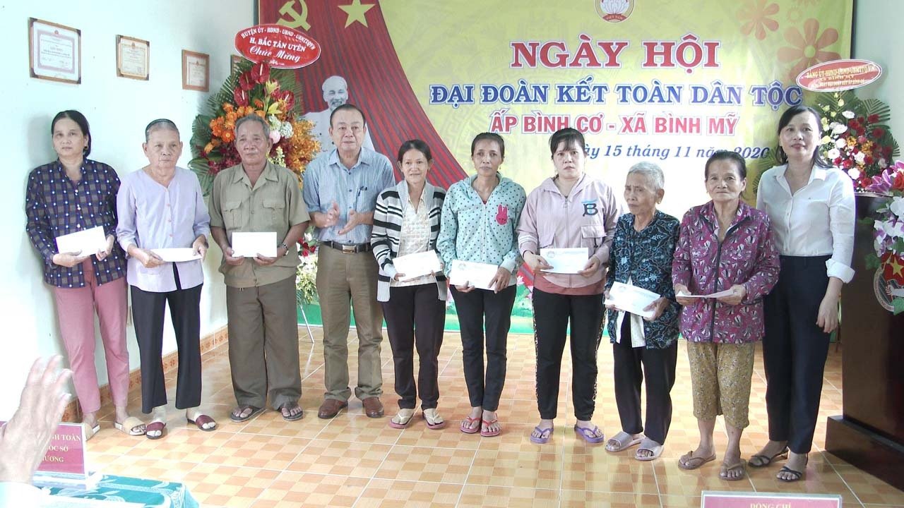 Dịp này, lãnh đạo tỉnh đã trao 10 phần quà và lãnh đạo huyện đã trao tặng 10 phần quà cho hộ nghèo, hộ có hoàn cảnh khó khăn; xã Bình Mỹ tuyên dương khen thưởng 5 hộ gia đình đạt gia đình văn hóa tiêu biểu năm 2020; Hội Cựu chiến binh xã Bình Mỹ đã trao tặng 5 phần quà cho 5 gia đình có hoàn cảnh khó khăn trên địa bàn xã.