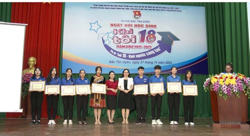 Sáng ngày 27-11, Huyện Đoàn Bắc Tân Uyên tổ chức Ngày hội học sinh Khi tôi 18 với chủ đề “Tuổi 18 – Khơi nguồn sáng tạo” năm học 2022 – 2023 với sự tham gia của hơn 100 học sinh của 3 trường trung học phổ thông trên địa bàn huyện.