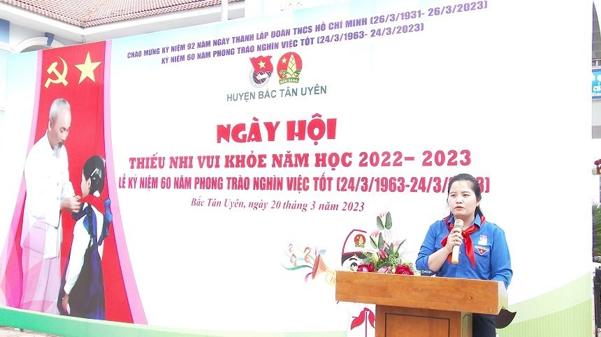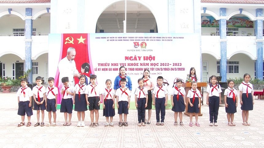 Sáng ngày 20/3, tại trường Tiểu học Tân Định, Huyện đoàn, Hội đồng Đội huyệnBắc Tân Uyên phối hợp cùng Phòng Giáo dục và Đào tạo huyện tổ chức Ngày hội“Thiếu nhi vui khỏe năm học 2022-2023” và kỷ niệm 60 năm phong trào Nghìn việc tốt 24/3/1963-24/3/2023. Dự ngày hội có cô Huỳnh Thị Minh Hà-Phó Trưởng phòng Giáo dục và Đàotạo huyện, chị Vũ Thị Lan Anh-Phó Chủ tịch hội đồng Đội huyện, các anh, chị Chủ tịch hội đồng Đội, Tổng phụtrách Đội trên địa bàn huyện; ban giám hiệu, các thầy, cô giáo và hơn 700 họcsinh trường Tiểu học Tân Định.