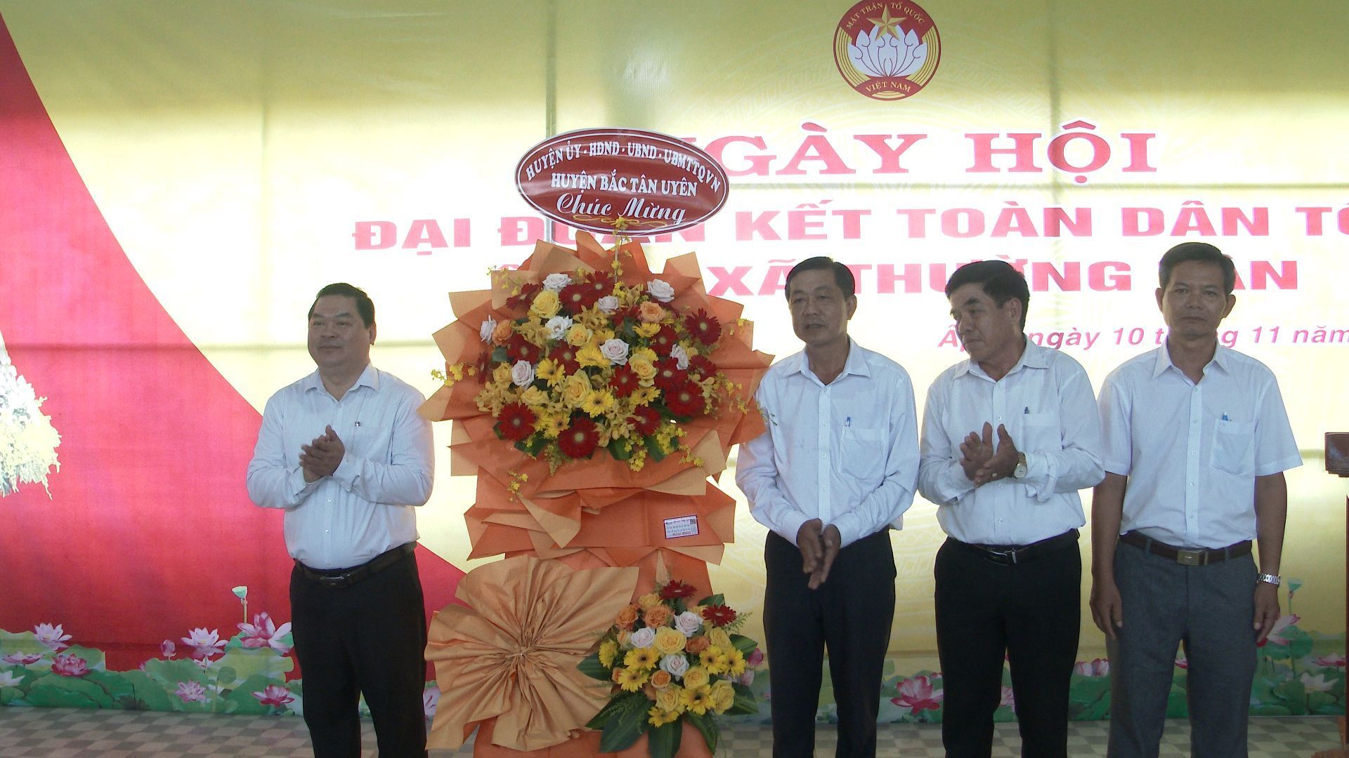 lãnh đạo huyện tặng hoa chúc mừng