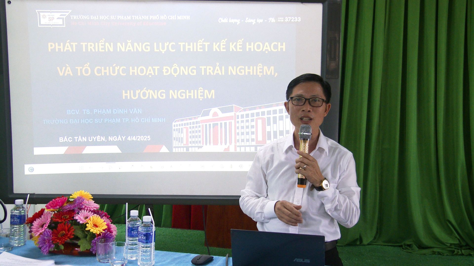 Chiều ngày 4/4, tại trường THCS Tân Thành Phòng Giáo dục và Đào tạo huyện Bắc Tân Uyên phối hợp cùng Trường ĐH TPHCM, Trường Đại học Thủ Dầu Một tổ chức lớp bồi dưỡng chuyên đề phát triển năng lực tổ chức hoạt động trải nghiệm, hướng nghiệp cho 60 đại biểu là Phó Hiệu trưởng phụ trách chuyên môn, giáo viên trực tiếp giảng dạy môn hoạt động trải nghiệm, hướng nghiệp cấp THCS các trường trên địa bàn huyện.