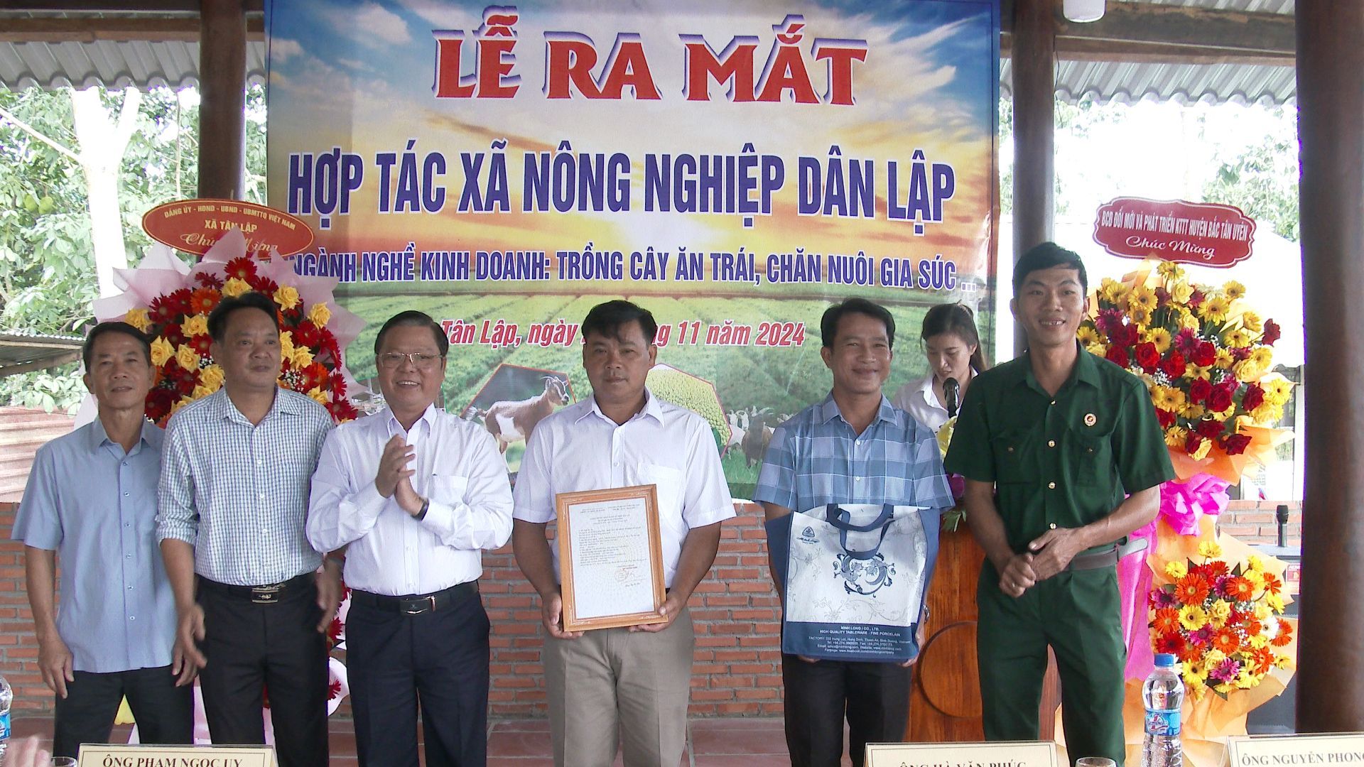 Đến dự lễ ra mắt, Liên minh Hợp tác xã tỉnh, Chi cục Phát triển nông thôn tỉnh, Phòng Tài chính - Kế hoạch huyện và lãnh đạo xã Tân Lập đã có những món quà, lẵng hoa tặng hợp tác xã và chúc mừng hợp tác xã hoạt động sản xuất kinh doanh ngày càng hiệu quả, phát triển mô hình kinh doanh rộng lớn, mang lại nguồn thu nhập cao cho thành viên; đồng thời, mong muốn rằng Hội đồng Quản trị, Ban Giám đốc và các thành viên hợp tác xã cần phát huy tốt hơn nữa tinh thần hợp tác, bám sát Nghị quyết Đại hội, điều lệ, phương án sản xuất kinh doanh và các nhiệm vụ chính trị của địa phương; tích cực nghiên cứu, học hỏi kinh nghiệm, cách làm của các hợp tác xã hoạt động có hiệu quả trong và ngoài địa bàn huyện; chủ động xây dựng các phương án sản xuất kinh doanh phù hợp với điều kiện thực tế của hợp tác xã và địa phương; tích cực tham gia các phong trào thi đua của địa phương và của hệ thống Liên minh hợp tác xã, nhất là phong trào đổi mới, sáng tạo trong sản xuất kinh doanh và phong trào mỗi xã một sản phẩm.