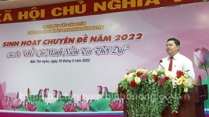 Sáng ngày 19-5, tại Hội trường UBND huyện, các Chi bộ khối UBND huyện đã phối hợp tổ chức buổi sinh hoạt chuyên đề "Học tập và làm theo tư tưởng, đạo đức, phong cách Hồ Chí Minh" lần thứ I năm 2022 với chủ đề “Hồ Chí Minh niềm tin thời đại”. Đến dự buổi sinh hoạt chuyên đề có đồng chí Trần Văn Phương - Phó Chủ tịch UBND huyện và các đồng chí Bí thư, Phó Bí thư, Thủ trưởng, cán bộ, đảng viên, công chức, viên chức, người lao động của các chi bộ, cơ quan khối UBND huyện.