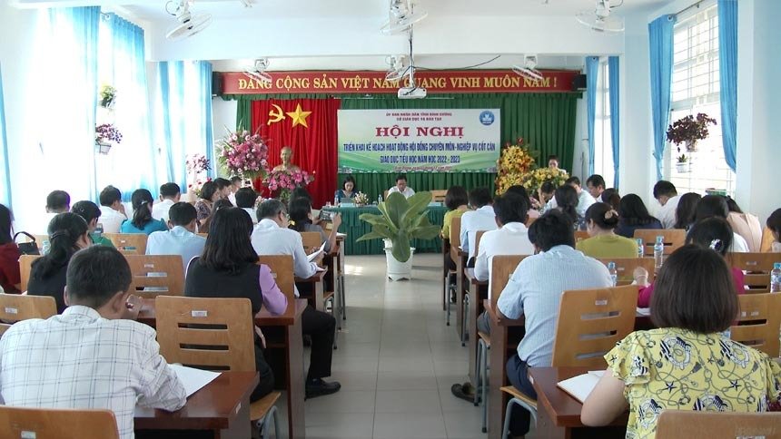 Ngày 2-12, tại trường Tiểu học Tân Thành, huyện Bắc Tân Uyên, Sở Giáo dục và Đào tạo tỉnh Bình Dương tổ chức Hội nghị triển khai kế hoạch hoạt động Hội đồng chuyên môn - nghiệp vụ cốt cán giáo dục tiểu học năm học 2022-2023. Dự hội nghị có ông Nguyễn Văn Phong - Phó Giám đốc Sở Giáo dục và Đào tạo tỉnh, bà Nguyễn Thị Kim Tuyết - Trưởng phòng Giáo dục mầm non tiểu học-Sở GD&ĐT, bà Nguyễn Kim Duyên - Phó phòng Giáo dục mầm non tiểu học-Sở GD&ĐT, lãnh đạo Phòng GD&ĐT các huyện, thị xã, thành phố trên địa bàn tỉnh cùng 114 giáo viên là thành viên Hội đồng Chuyên môn-Nghiệp vụ cốt cán Giáo dục Tiểu học cấp tỉnh năm học 2022-2023.