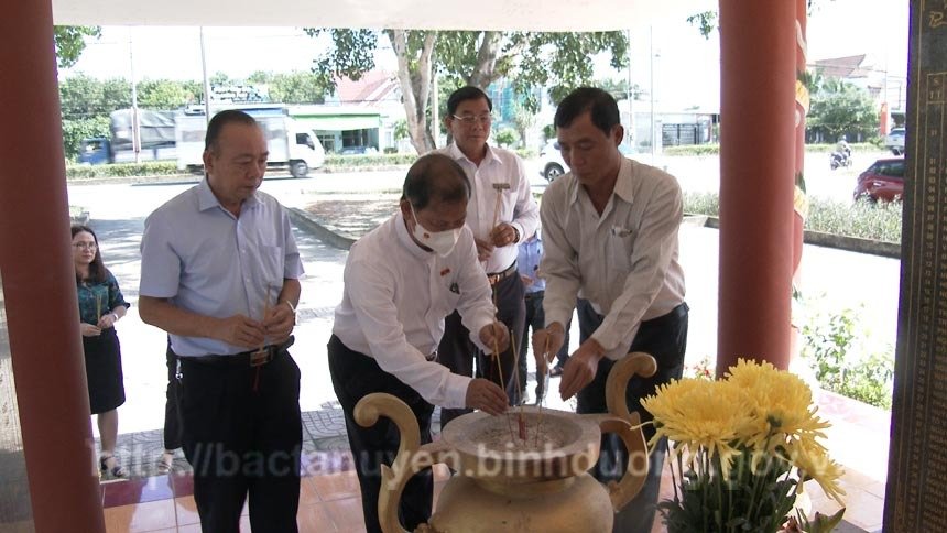 Đoàn Lãnh đạo đến viếng và dâng hương tại Nhà bia Liệt sĩ thị trấn Tân Bình