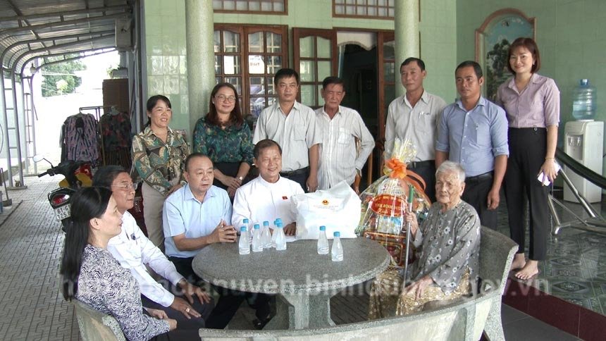 Tiếp đó, Đoàn đã đến viếng Nhà bia Liệt sĩ thị trấn Tân Bình và đến thăm hỏi, tặng quà Mẹ Việt Nam anh hùng Đoàn Thị Chèo, tại đây đoàn đã ân cần thăm hỏi sức khỏe, bày tỏ lòng biết ơn sâu sắc đến những hy sinh, đóng góp của Mẹ Việt Nam anh hùng trong cuộc kháng chiến cứu nước; đồng thời mong muốn các mẹ tiếp tục động viên con cháu phát huy truyền thống cách mạng của gia đình, góp phần xây dựng quê hương, đất nước ngày càng giàu đẹp.