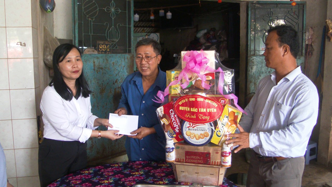 Được biết dịp này, đoàn đã trao tặng 6 phần quà của tỉnh và 45 phần quà của huyện tại thị trấn Tân Bình và 8 phần quà cho 7 gia đình chính sách tại xã Tân Định. Trong đó, mỗi phần quà của tỉnh trị giá 3,5 triệu đồng gồm 2,5 triệu đồng tiền mặt và quà 1 triệu đồng. Mỗi phần quà của huyện trị giá 3 triệu đồng gồm 2 triệu đồng tiền mặt và quà 1 triệu đồng.