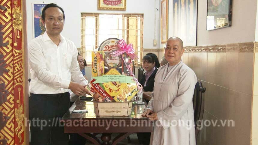 Nhân dịp này, thay mặt Huyện ủy – HĐND – UBND – UBMTTQVN huyện, đồng chí Trương Văn Phong – Phó Bí thư Huyện ủy đã tặng quà và chúc mừng Đại Đức Thích Thiện Quang - Trưởng Ban trị sự Giáo hội Phật giáo Việt Nam huyện Bắc Tân Uyên, trụ trì Chùa Bảo Lâm Sơn – xã Tân Định; Ni sư Thích Nữ Giác Nguyện - Phó Ban Thường trực Giáo hội Phật giáo Việt Nam huyện Bắc Tân Uyên, trụ trì Chùa Long Sơn (Chùa Ông Mõ) xã Tân Mỹ và các tăng ni, phật tử thân tâm an lạc.
