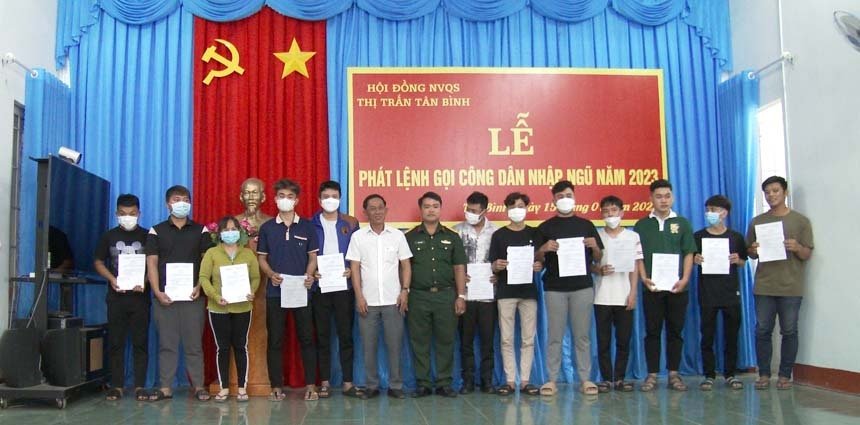Chiều ngày 15-1, Hội đồng Nghĩa vụ quân sự thị trấn Tân Bình tổ chức Lễ phát lệnh gọi công dân nhập ngũ năm 2023. Tham dự buổi lễ có Trung tá Lê Đức Thành - Phó Chỉ huy Trưởng Ban Chỉ huy quân sự huyện, ông Huỳnh Văn Tùng -Chủ tịch UBND, Chủ tịch Hội đồng Nghĩa vụ quân sự thị trấn Tân Bình cùng 30 thanh niên và gia đình thanh niên thị trấn trúng tuyển nghĩa vụ quân sự và nghĩa vụ công an năm 2023, đại diện các ngành, đoàn thể, thị trấn, ban điều hành các khu phố.