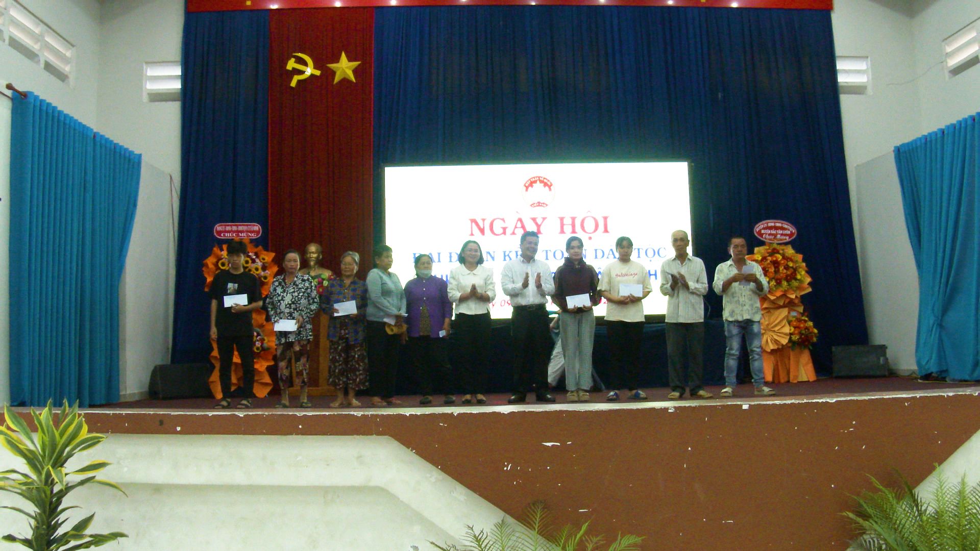 lãnh đạo tỉnh, huyện trao quà cho các hộ gia đình khó khăn