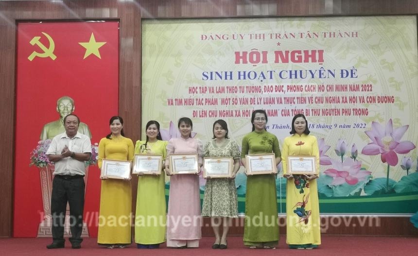 Chiều ngày 18-9, Đảng ủy thị trấn Tân Thành tổ chức Hội nghị sinh hoạt chuyên đề năm 2022 với chủ đề “tìm hiểu chuyên đề học tập và làm theo tư tưởng, đạo đức, phong cách Hồ Chí Minh năm 2022” và nội dung tác phẩm “một số vấn đề lý luận và thực tiễn về chủ nghĩa xã hội và con đường đi lên chủ nghĩa xã hội ở Việt Nam” của Tổng Bí thư Nguyễn Phú Trọng. Tham dự Hội nghị có ông Ngô Phương Thanh - Phó Trưởng ban Tuyên giáo Huyện ủy; ông Huỳnh Ngọc Hạnh - Giám đốc Trung tâm Văn hóa, Thể thao và Truyền thanh huyện; ông Huỳnh Thanh Tuấn - Bí thư Đảng ủy, Chủ tịch HĐND huyện cùng các ông, bà là Ủy viên Ban Chấp hành Đảng bộ thị trấn.