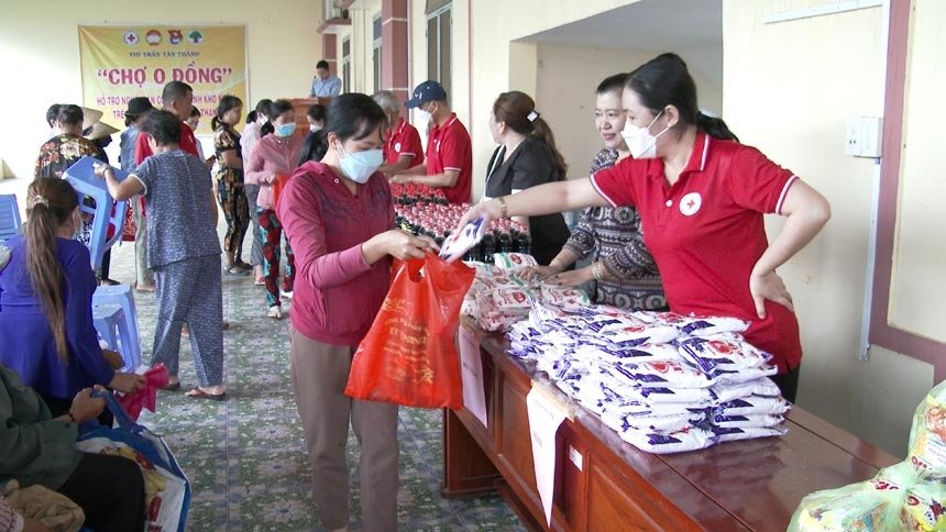 Chiều ngày 28-9, Hội Chữ thập đỏ thị trấn Tân Thành phối hợp cùng các ngành, đoàn thể thị trấn tổ chức phiên “Chợ 0 đồng” phục vụ người dân có hoàn cảnh khó khăn trên địa bàn thị trấn năm 2022.