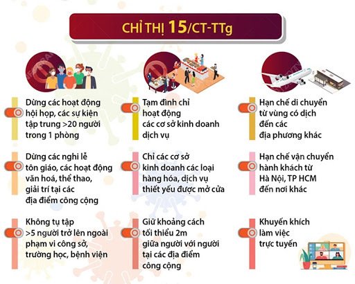 - Dừng toàn bộ các nghi lễ tôn giáo; dừng các hoạt động hội họp, các sự kiện tập trung trên 20 người trong 1 phòng, không tụ tập từ 10 người trở lên ngoài phạm vi công sở, trường học, bệnh viện; yêu cầu thực hiện khoảng cách tối thiểu 02m giữa người và người tại các điểm công cộng; Các cơ sở kinh doanh dịch vụ, phân xưởng, nhà máy sản xuất được phép hoạt động phải đảm bảo khoảng cách an toàn, đeo khẩu trang, thực hiện khử trùng, diệt khuẩn theo khuyến cáo của Bộ Y tế về công tác phòng, chống dịch Covid-19; tạm đình chỉ hoạt động các dịch vụ không cần thiết: Massage, phòng tập thể hình (gym), phòng tập yoga, karaoke, vũ trường, cơ sở du lịch, tham quan, tụ điểm vui chơi, phòng game, giải trí, chiếu phim, quán bia,...; đóng cửa các cơ sở làm đẹp, thẩm mỹ, vật lý trị liệu trên toàn huyện; khuyến cáo người dân không nên rời khỏi nhà và di chuyển khi không cần thiết, đeo khẩu trang tại nơi công cộng.
