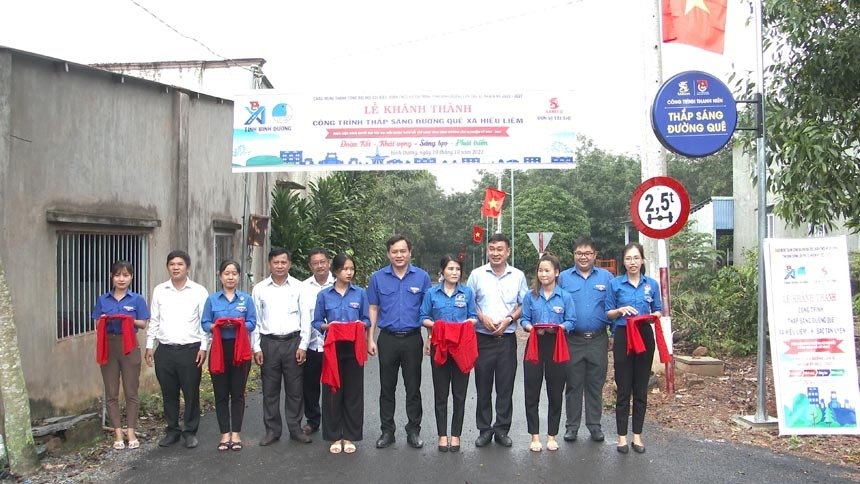 Sáng ngày 19-10, tại ấp Cây Dâu, xã Hiếu Liêm, huyện Bắc Tân Uyên, Tỉnh Đoàn Bình Dương tổ chức Lễ khánh thành Công trình Thanh niên “Thắp sáng đường quê” năm 2022. Dự lễ khánh thành có đồng chí Trần Bảo Lâm - Phó Bí thư Thường trực Tỉnh Đoàn, Chủ tịch Hội LHTNVN tỉnh; đồng chí Thái Kiến Thuận -Trưởng ban Phong trào Tỉnh Đoàn, Phó Chủ tịch Thường trực Hội LNTNVN tỉnh; đồng chí Đỗ Ngọc Lợi - Bí thư Huyện Đoàn Bắc Tân Uyên; đơn vị tài trợ, lãnh đạo xã Hiếu Liêm, cán bộ, đoàn viên thanh niên xã và nhân dân hai bên tuyến đường công trình.