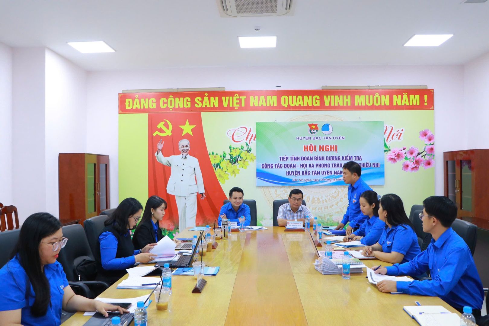 Ngày 14/11, Đoàn kiểm tra công tác Đoàn và phong trào thanh thiếu nhi tỉnh do đồng chí Lê Tuấn Anh - Phó Bí thư Thường trực Tỉnh đoàn, Chủ tịch Hội Sinh viên Việt Nam tỉnh, Chủ tịch Hội đồng Đội tỉnh làm trưởng đoàn đã có buổi kiểm tra công tác Đoàn và phong trào thanh thiếu nhi năm 2024 tại Huyện đoàn Bắc Tân Uyên. Tiếp và làm việc với đoàn có đồng chí Phạm Văn An - Ủy viên Thường vụ Huyện uỷ -Trưởng Ban Dân vận Huyện uỷ; đồng chí Đỗ Ngọc Lợi - Huyện uỷ viên, Bí thư Huyện đoàn; đồng chí Hồ Thị Thanh Tuyền - Phó Bí thư Huyện đoàn, cùng các đồng chí Ủy viên Thường vụ Huyện đoàn và các đại diện Đoàn cơ sở trực thuộc.
