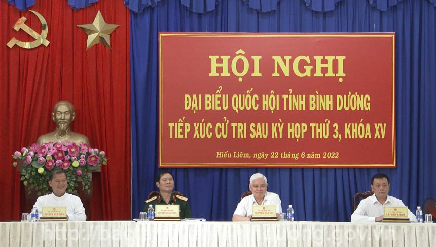 Phát biểu ý kiến tại Hội nghị, cử tri xã Hiếu Liêm bày tỏ vui mừng trước những thành tựu nổi bật của của đất nước trong thời gian qua, đồng thời phản ánh đến các đại biểu Quốc hội các vấn đề, như: kiến nghị cần nâng mức xử phạt trong các lĩnh vực môi trường, tham nhũng, an toàn giao thông…; việc kiểm soát thông tin, tin quảng cáo, tin rác trên các trang mạng cá nhân, mạng xã hội cần được quản lý tốt hơn; việc giá xăng, dầu tăng cao gây ảnh hưởng đến đời sống người dân; kiến nghị về chế độ cho người hoạt động không chuyên trách tại các xã, phường, thị trấn theo Nghị định 34/2019/NĐ-CP, đặc biệt là chế độ thai sản; xây cầu bắt qua sông Đồng Nai, sông Bé nối liền tỉnh Bình Dương và tỉnh Đồng Nai tại địa phận xã Hiếu Liêm; xử lý đất nông, lâm trường Chiến khu D trên địa bàn huyện Bắc Tân Uyên; đề nghị xây Bia tưởng niệm cho các Liệt sĩ hi sinh tại mặt trận Vị Xuyên.