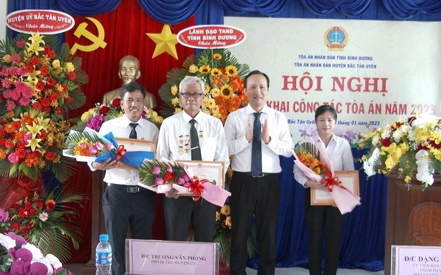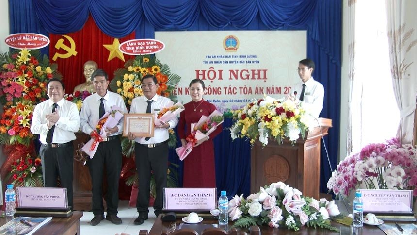Chiều ngày 3-1, Tòa án nhân dân huyện Bắc Tân Uyên tổ chức Hội nghị tổng kết hoạt động năm 2022, triển khai phương hướng, nhiệm vụ năm 2023. Dự Hội nghị có ông Đặng An Thanh - Phó Chánh án Toàn án nhân dân tỉnh, ông Trương Văn Phong - Phó Bí thư Huyện ủy, ông Lê Văn Quý - Phó Chủ tịch HĐND huyện, bà Võ Thị Tuyết Nhung - Phó Chủ tịch UBMTTQVN huyện, lãnh đạo các cơ quan ngành Tư pháp huyện.