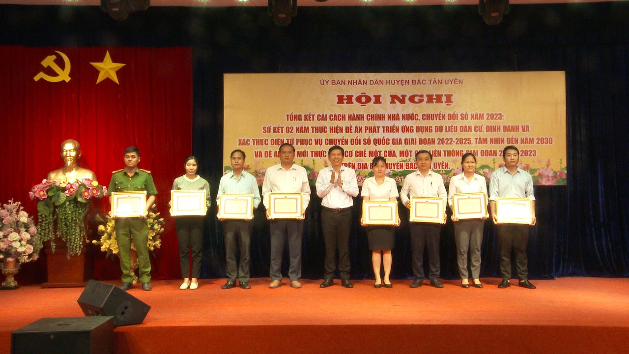 Dịp này, ban tổ chức đã trao giấy khen của Chủ tịch UBND huyện cho 40 tập thể, 77 cá nhân có thành tích xuất sắc trong công tác cải cách hành chính nhà nước, Chuyển đổi số năm 2023; 02 năm thực hiện Đề án phát triển ứng dụng dữ liệu dân cư, định danh và xác thực điện tử phúc vụ chuyển đồi số quốc gia giai đoạn 2022-2025 và Đề án đổi mới thực hiện cơ chế một cửa, một cửa liên thông giai đoạn 2021-2023.