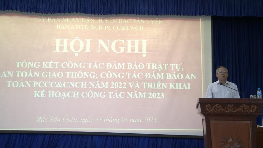 Sáng ngày 11-1, huyện Bắc Tân Uyên tổ chức Hội nghị tổng kết công tác đảm bảo trật tự, an toàn giao thông (ATGT); công tác đảm bảo an toàn phòng cháy chữa cháy (PCCC) năm 2022, triển khai nhiệm vụ năm 2023. Dự hội nghị có ông Thái Thanh Bình - Bí thư Huyện ủy, Chủ tịch UBND huyện; Thượng tá Nguyễn Thành Thường - Trưởng Công an huyện cùng Lãnh đạo các ban, ngành, đoàn thể huyện, lãnh đạo, Trưởng Công an các xã, thị trấn trên địa bàn huyện.