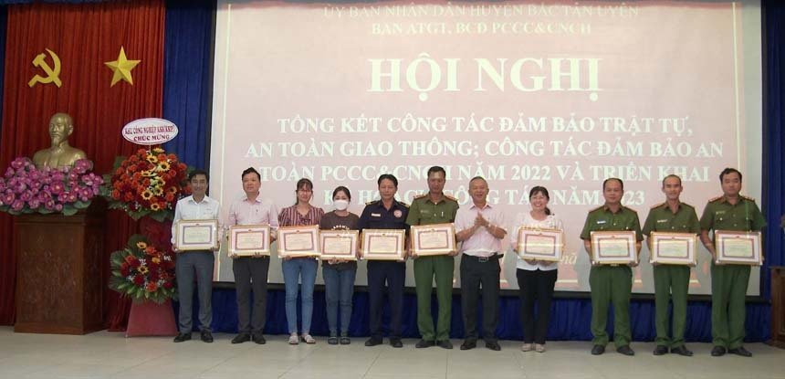 Dịp này, Ban tổ chức Hội nghị đã trao giấy khen của Chủ tịch UBND huyện cho 13 tập thể và 19 cá nhân có thành tích xuất sắc trong thực hiện công tác đảm bảo trật tự ATGT và thực hiện phong trào toàn dân đảm bảo an toàn PCCC năm 2022.