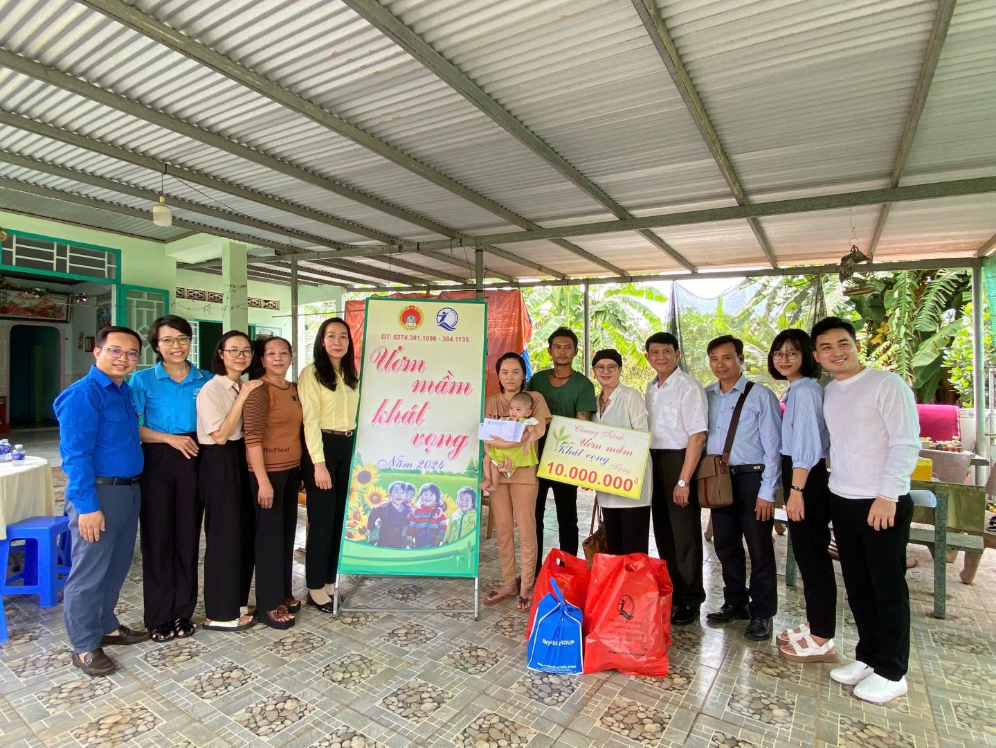 Tại đây, Quỹ Bảo trợ trẻ em tỉnh Bình Dương cùng với mạnh thường quân đã trao tặng tiền mặt và quà với tổng trị giá 18 triệu đồng cho gia đình em Trương Thị Phương Nghi.