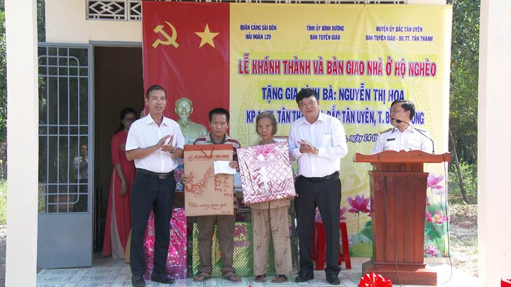 Căn nhà được trao cho bà Nguyễn Thị Hoa, khu phố 1, thị trấn Tân Thành, là đối tượng thuộc diện khó khăn về nhà ở của thị trấn. Căn nhà được xây dựng theo quy cách nhà cấp 4, một mái, tường xây tô quét vôi, mái lợp tôn, đòn tay sắt, nền gạch men, cửa khung sắt gắn kiếng. Tổng kinh phí xây dựng 80 triệu đồng do Hải đoàn 129 - Quân cảng Sài Gòn hỗ trợ.