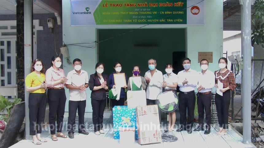 Chiều ngày 29-12, Ủy ban Mặt trận Tổ quốc Việt Nam huyện Bắc Tân Uyên phối hợp cùng thị trấn Tân Bình tổ chức lễ trao nhà Đại đoàn kết cho hộ nghèo tại thị trấn Tân Bình. Đến dự lễ trao nhà có bà Trần Thị Kim Lan - Phó Chủ tịch Ủy ban MTTQ VN tỉnh, đại diện Ủy ban MTTQ VN huyện, Ngân hàng Thương mại cổ phần Ngoại thương Việt Nam - chi nhánh Bình Dương, lãnh đạo thị trấn Tân Bình và các ngành, đoàn thể thị trấn.