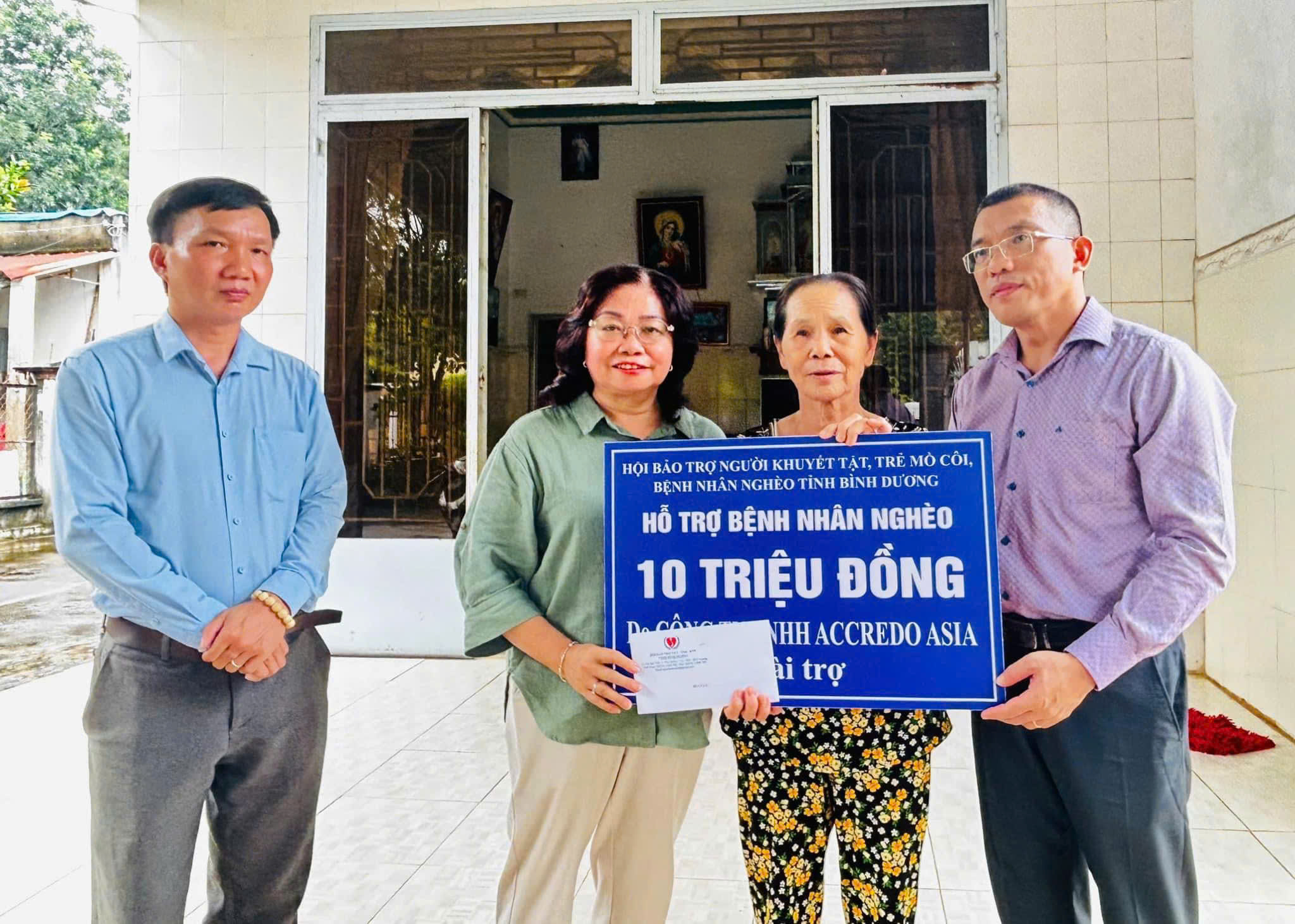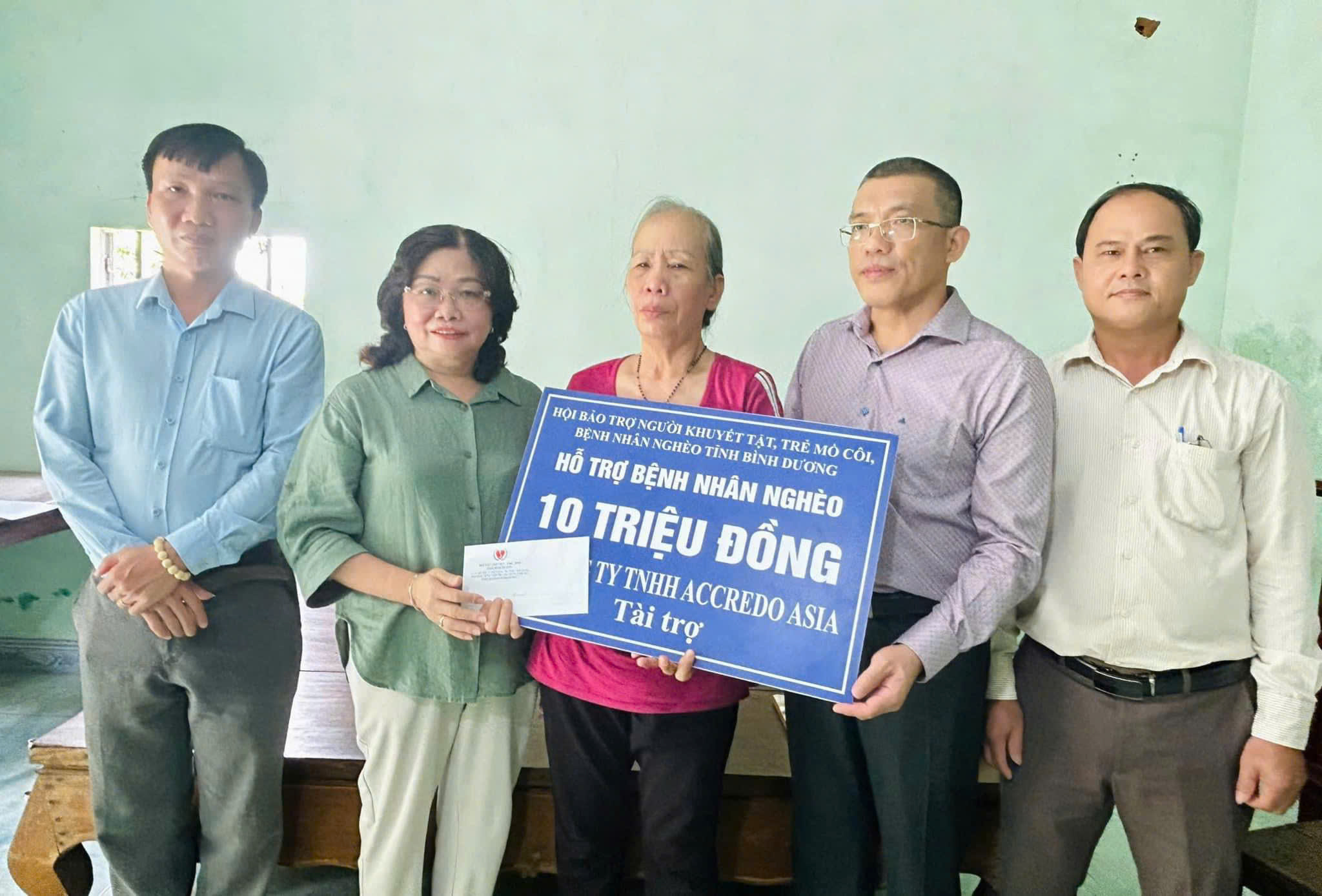 Được biết, ngoài nhiệm vụ bảo vệ quyền và lợi ích hợp pháp cho người khuyết tật, trẻ mồ côi và bệnh nhân nghèo, Hội Bảo trợ người khuyết tật, trẻ mồ côi và bệnh nhân nghèo tỉnh Bình Dương còn tích cực vận động nguồn lực, góp phần giúp đỡ về vật chất, tinh thần, tạo điều kiện cho người khuyết tật, trẻ mồ côi và bệnh nhân nghèo có cuộc sống ổn định. Đợt này, Hội Bảo trợ đã trao tặng hỗ trợ cho 04 người bệnh nhân nghèo xã Lạc An và Hiếu Liêm với mức hỗ trợ 10 triệu đồng/người, kinh phí được Công ty TNHH Accredo Asia, KCN Vsip II-A, thị trấn Tân Bình, huyện Bắc Tân Uyên, Bình Dương tài trợ.