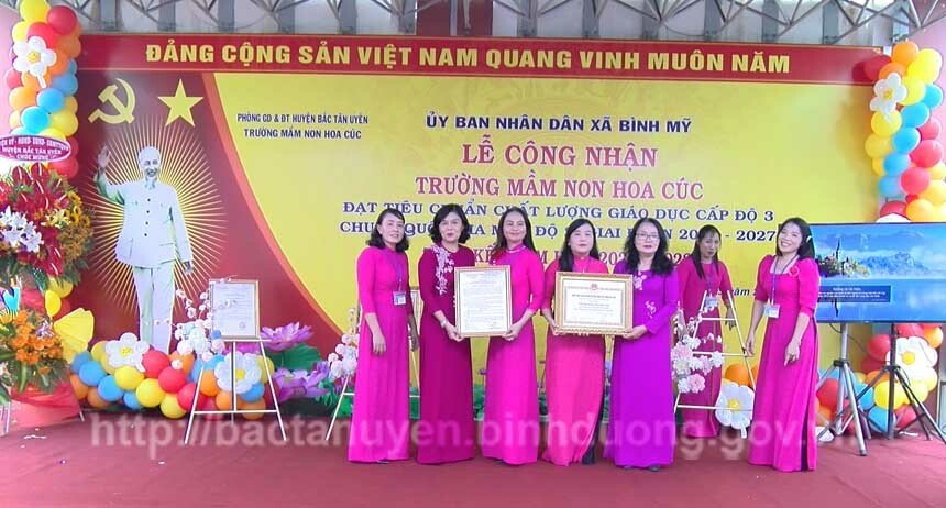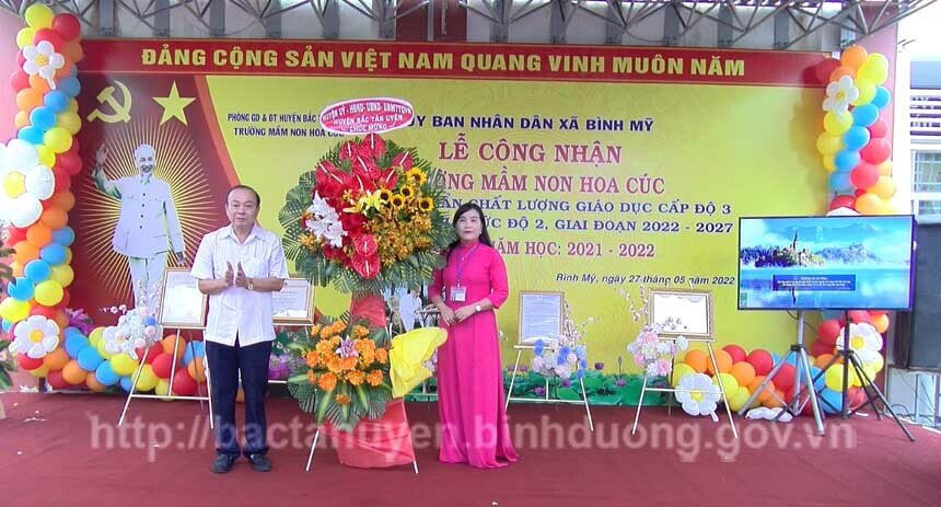 Trường Mầm non Hoa Cúc, xã Bình Mỹ đạt tiêu chuẩn chất lượng giáo dục cấp độ 3 và chuẩn Quốc gia mức độ 2