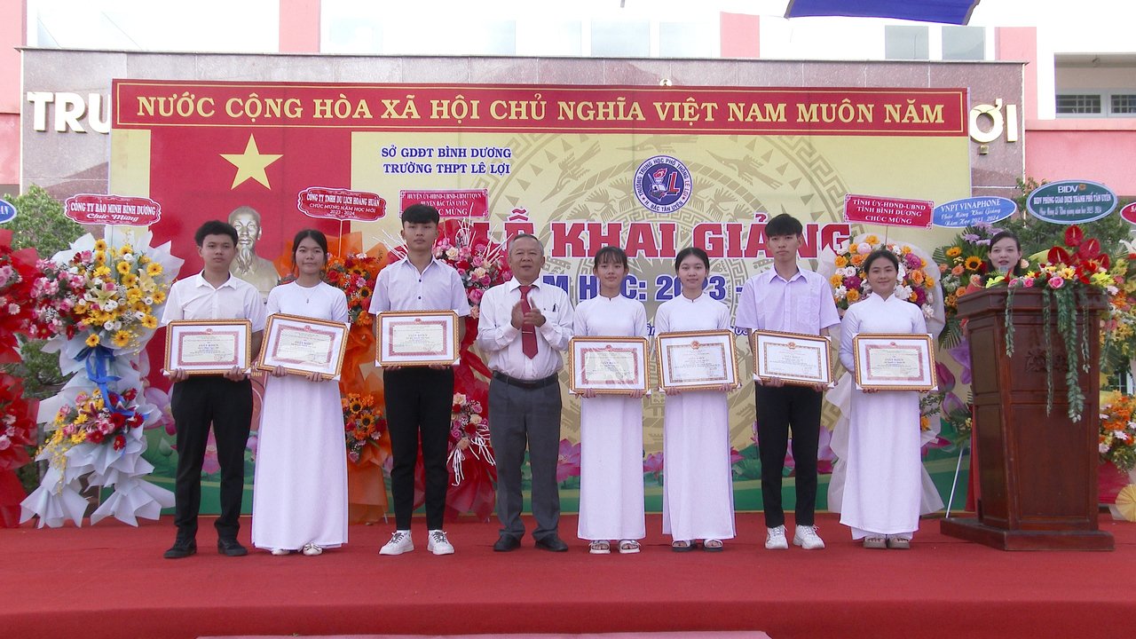 Sáng 05/9, hoà trong trong khí vui tươi, phấn khởi của học sinh cả nước, trường THPT Lê Lợi đã long trọng tổ chức buổi Lễ khai giảng chào mừng năm học mới 2023-2024. Tham dự buổi lễ có ông Võ Văn Bá - UVTV, Trưởng Ban Nội chính Tỉnh ủy; ông Thái Thanh Bình - TUV, Bí thư Huyện ủy; bà Phạm Thị Tùng Oanh - Hiệu Trưởng nhà trường cùng toàn thể thầy cô giáo và gần 600 học sinh trường THPT Lê Lợi.