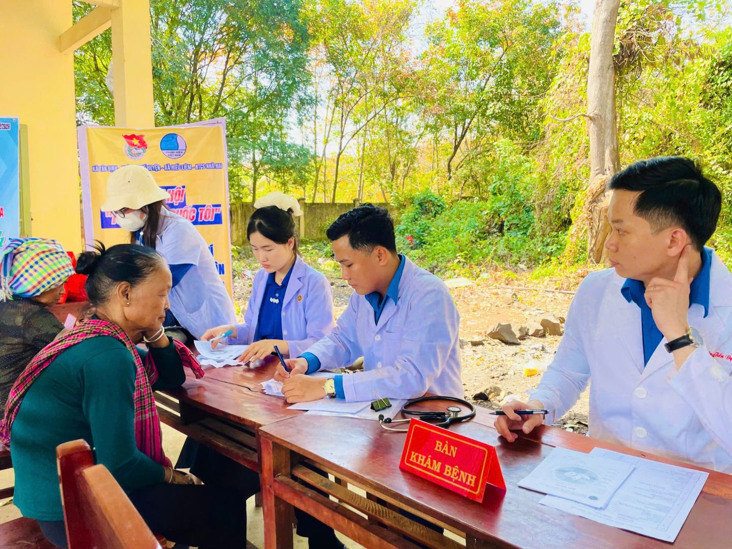 (Đoàn tổ chức tư vấn sức khỏe, khám bệnh và phát thuốc miễn phí cho người dân và trẻ em khó khăn tại vùng biên giới)