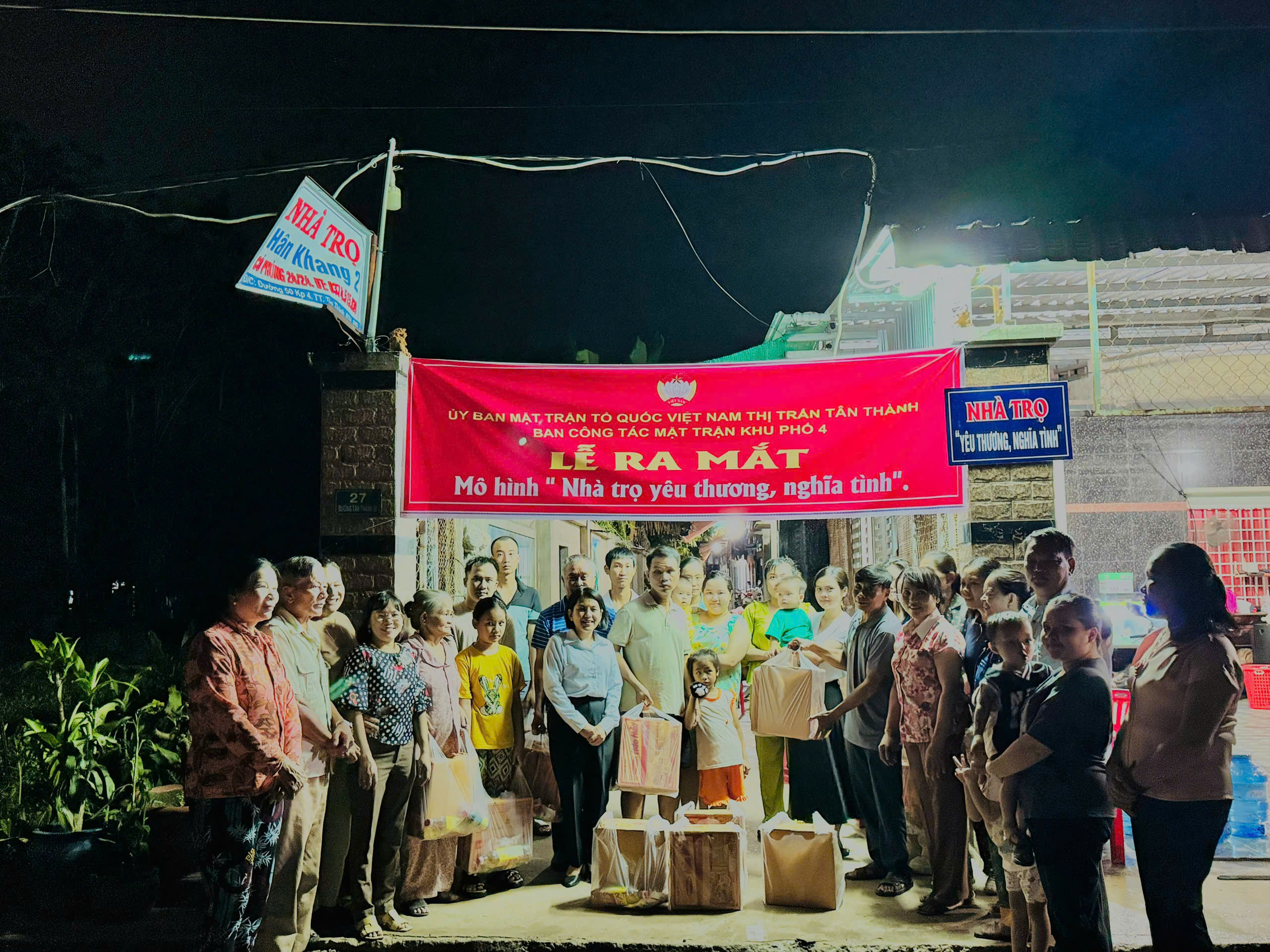 Tối ngày 01/10, UBMTTQ Việt Nam thị trấn Tân Thành phối hợp Ban Công tác Mặt trận khu phố 4 tổ chức lễ ra mô hình “Khu nhà trọ yêu thương - nghĩa tình” tại nhà trọ Hân Khang ở khu phố 4 thị trấn. Tham dự lễ ra mắt có lãnh đạo Ủy ban MTTQ Việt Nam thị trấn cùng Bí thư Chi bộ khu phố, các đồng chí trong Chi ủy, Ban công tác Mặt trận khu phố, Ban điều hành khu phố; gia đình ông Nguyễn Sỹ Phương - chủ nhà trọ Hân Khang và 17 hộ gia đình đang sinh sống trong nhà trọ.