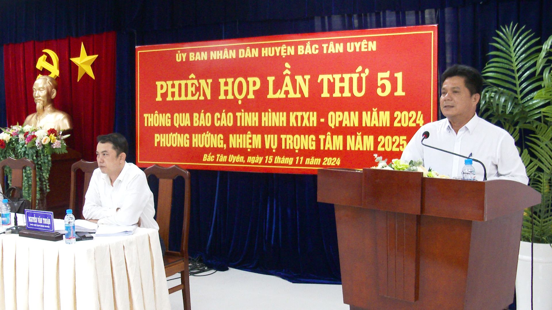 UBND huyện Bắc Tân Uyên tổ chức phiên họp lần thứ 51 thông qua báo cáo tình hình KTXH- QPAN năm 2024