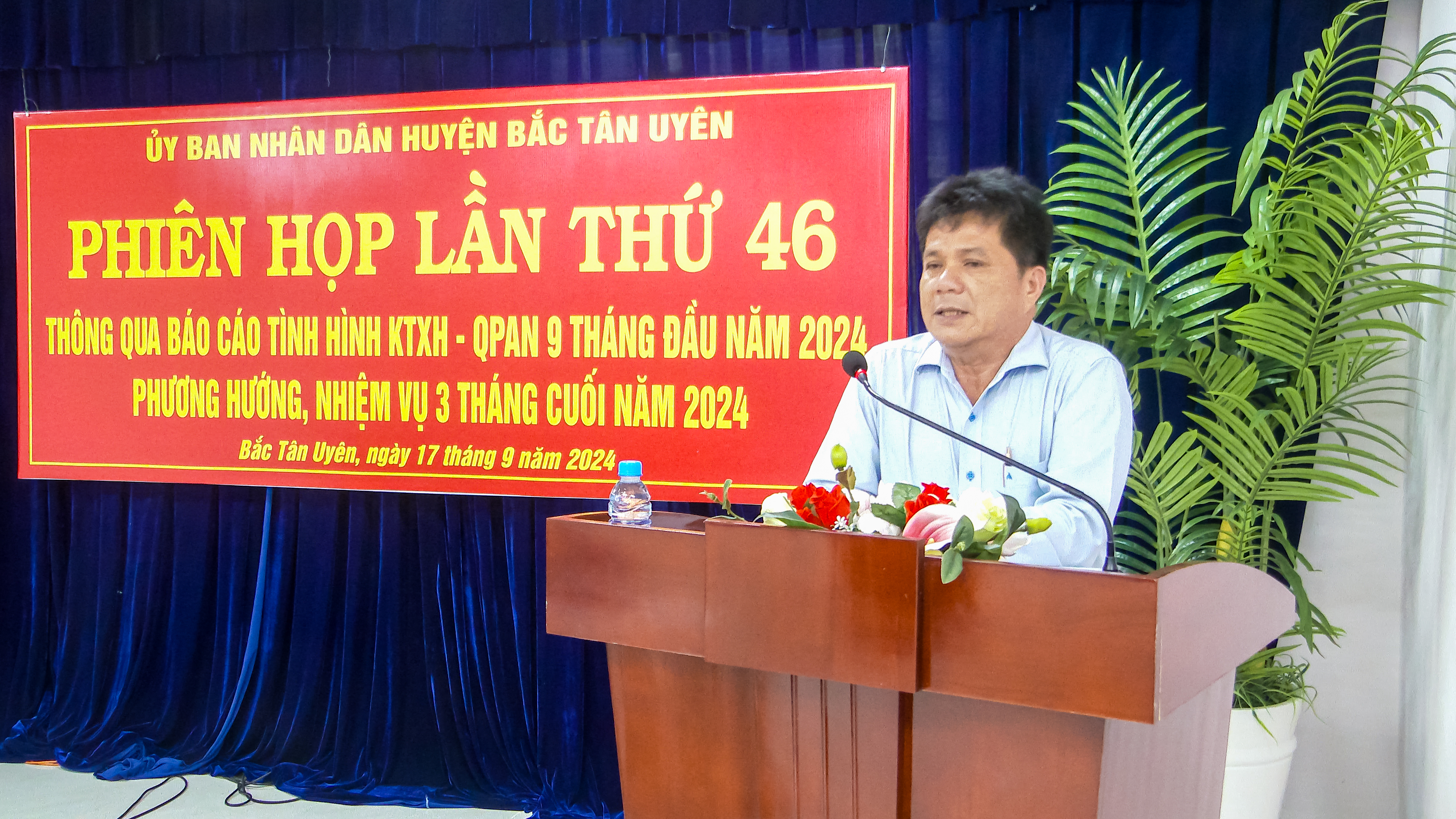 Sáng ngày 17/9, UBND huyện Bắc Tân Uyên tổ chức phiên họp thường kỳ lần thứ 46 để đánh giá kết quả thực hiện nhiệm vụ phát triển kinh tế - xã hội, đảm bảo quốc phòng - an ninh 9 tháng năm 2024, triển khai nhiệm vụ 3 tháng cuối năm và một số nội dung quan trọng khác. Phiên họp do ông Nguyễn Thành Thường - Phó Bí thư Huyện ủy, Chủ tịch UBND huyện chủ trì. Cùng dự phiên họp có ông Phạm Văn An - Trưởng Ban Dân vận Huyện ủy; ông Trần Văn Phương - UVTV Huyện ủy, PCT. UBND huyện; ông Nguyễn Văn Thuận - Huyện ủy viên, PCT. UBND huyện; cùng đại diện lãnh đạo HĐND, UBMTTQ huyện, các ban ngành đoàn thể và lãnh đạo UBND các xã, thị trấn.