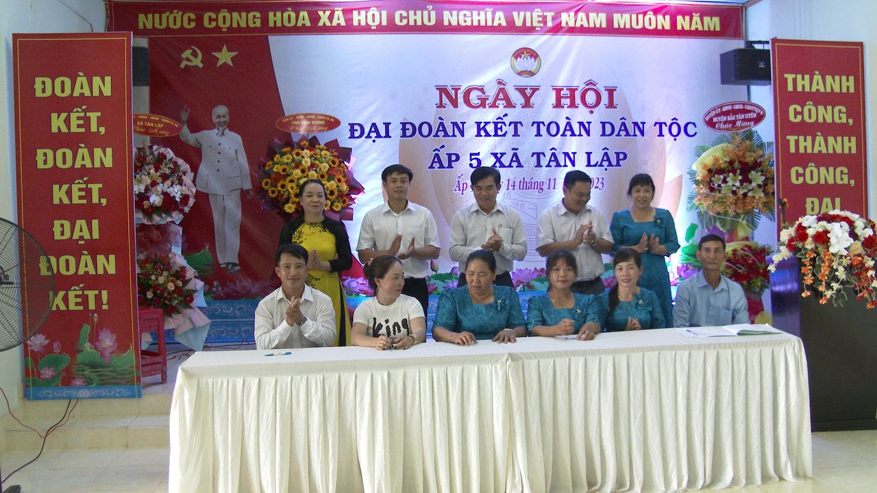 Chiều ngày 14/11, ông Thái Thanh Bình- TUV, Bí thư Huyện ủy Bắc Tân Uyên về dự chúc mừng và chung vui ngày hội Đại đoàn kết cùng bà con nhân dân ấp 5 xã Tân Lập. Tham dự ngày hội còn có ông Trần Thanh Hoàng-TUV, Chánh án Tòa án nhân dân tỉnh; ông Bùi Hữu Toàn-Giám Đốc Sở VHTT&DL tỉnh; ông Lưu Hữu Duyên-UVTV, Trưởng Ban tuyên giáo huyện ủy, giám đốc Trung tâm chính trị huyện; cùng đại diện lãnh đạo MTTQ huyện, UBND xã Tân Lập và đông đảo bà con, nhân dân ấp 5 xã Tân Lập.
