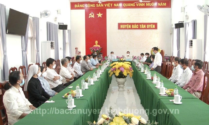 Sáng 12-1, Đoàn Uỷ ban Đoàn kết Công giáo huyện Bắc Tân Uyên do Linh mục Nguyễn Văn Quốc - Hạt Trưởng Giáo Hạt Lạc An, Chánh xứ Giáo xứ Võng Phan dẫn đầu đã đến thăm và chúc mừng lãnh đạo Huyện ủy – HĐND – UBND - UBMTTQVN Huyện nhân Kỷ niệm 92 năm ngày thành lập Đảng Cộng sản Việt Nam (3/2/1930 - 3/2/2022) và Tết Nguyên đán Nhâm Dần 2022. Dự và tiếp Đoàn có ông Võ Văn Tính - Phó Bí thư Thường trực Huyện ủy, Chủ tịch HĐND huyện; ông Phạm Văn An - Trưởng Ban Dân vận Huyện ủy, Chủ tịch UBMTTQVN huyện.