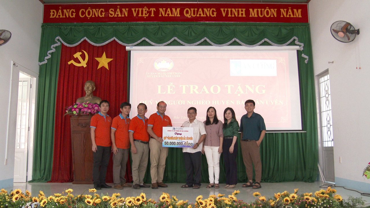 Nhân dịp này, Ủy ban MTTQ Việt Nam huyện Bắc Tân Uyên cũng đã tiếp nhận số tiền 50 triệu đồng từ Công ty cổ phần gỗ An Cường vào Quỹ “Vì người nghèo” của huyện nhằm hỗ trợ chăm lo Tết cho hộ nghèo, cận nghèo, người yếu thế trên địa bàn huyện.
