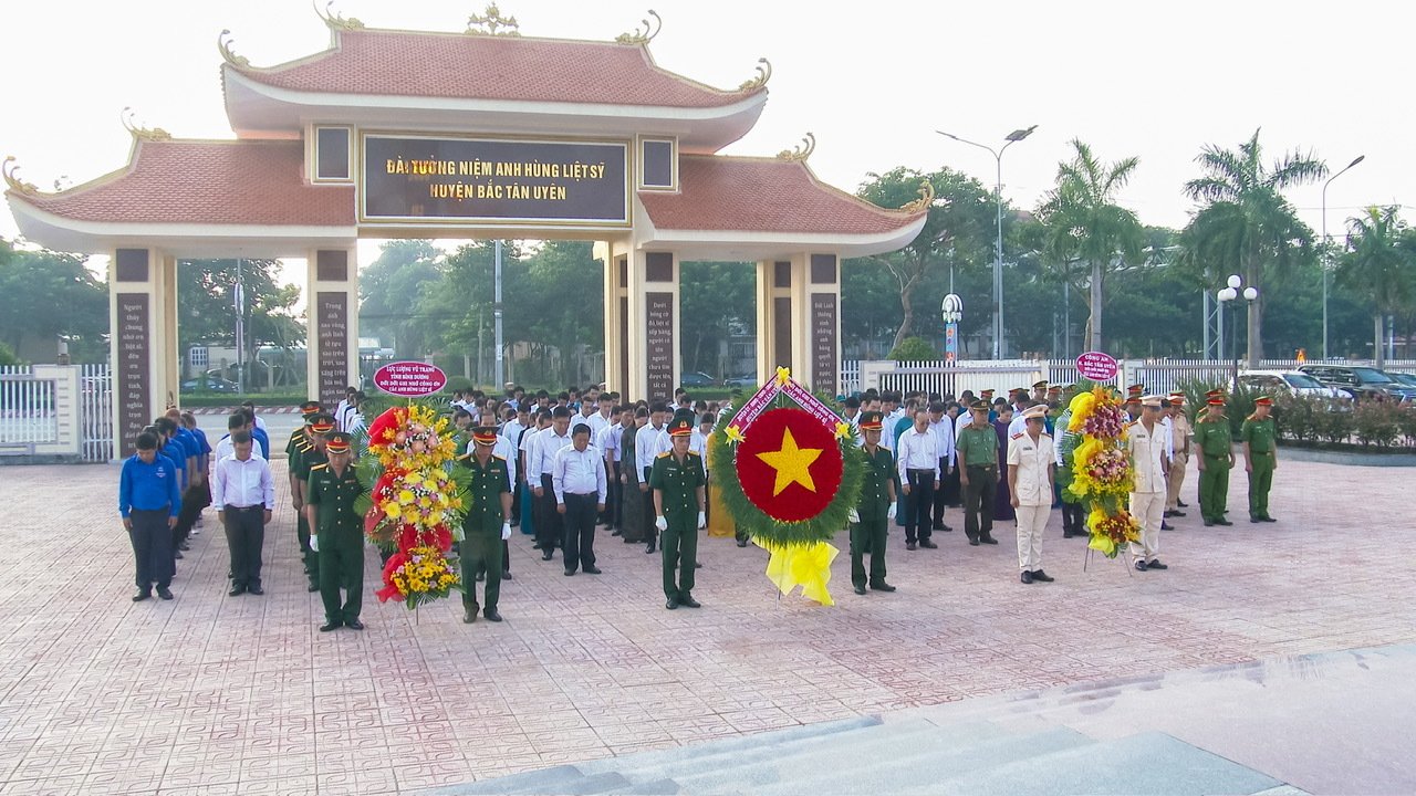 Tại Lễ viếng, các đồng chí lãnh đạo huyện đã dành phút mặc niệm và đặt vòng hoa, thành kính dâng hương tri ân, tưởng nhớ các anh hùng liệt sĩ, các bậc tiền bối những người đã xả thân vì sự nghiệp giải phóng dân tộc. Kỷ niệm 77 năm, ngày Thương binh Liệt sĩ 27/7, Đảng bộ, chính quyền và nhân dân huyện Bắc Tân Uyên tiếp tục khắc ghi và bày tỏ lòng biết ơn, tri ân sâu sắc đối với công ơn vô cùng to lớn của các anh hùng liệt sĩ, các bậc lão thành cách mạng, Mẹ Việt Nam anh hùng, các đồng chí thương binh, bệnh binh, các gia đình có công với cách mạng cùng toàn thể đồng bào và chiến sĩ đã anh dũng chiến đấu, hy sinh, đóng góp to lớn cho nền độc lập tự do của đất nước.