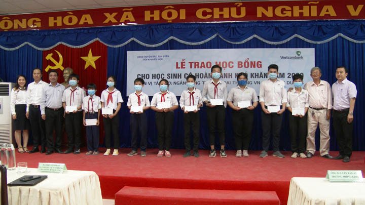 Tại buổi lễ, Ban tổ chức đã trao 100 suất học bổng cho các em học sinh, mỗi suất trị giá 500 ngàn đồng tiền mặt. Đây là các em học sinh nghèo, học sinh có hoàn cảnh khó khăn vượt khó học tốt của 10 trường Tiểu học và 2 trường THCS và 3 trường THPT trên địa bàn huyện. Các suất học bổng do Ngân hàng TMCP Ngoại thương Việt Nam - Chi nhánh Bình Dương (Vietcombank Bình Dương) tài trợ.