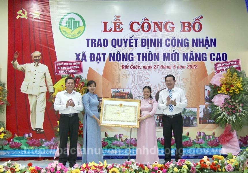 Dịp này, UBND tỉnh Bình Dương đã trao Bằng công nhận xã Đất Cuốc đạt chuẩn nông thôn mới nâng cao năm 2020; UBND xã tặng giấy khen cho 6 tập thể và 23 cá nhân có thành tích xuất sắc trong việc thực hiện Chương trình Mục tiêu Quốc gia về xây dựng nông thôn mới giai đoạn 2018 - 2022.