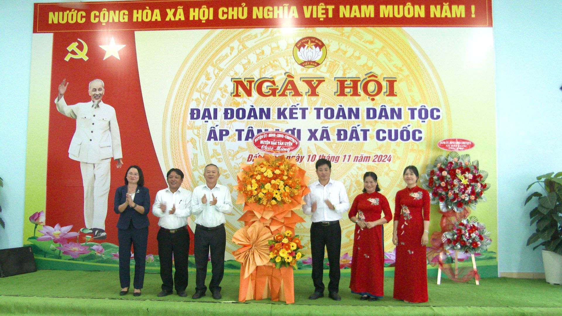 Chiều ngày 10/11, Ban Công tác Mặt trận ấp Tân Lợi, xã Đất Cuốc, huyện Bắc Tân Uyên phối hợp cùng Ban điều hành ấp tổ chức Ngày hội đại đoàn kết toàn dân tộc năm 2024. Đến dự ngày hội có bà Trần Thị Kim Lan - Phó Chủ tịch Ủy ban MTTQ VN tỉnh, ông Bùi Hữu Toàn - Giám đốc Sở Văn hóa, thể thao và Du lịch tỉnh, bà Nguyễn Thị Tuyết Thanh - Chánh án Tòa án nhân dân tỉnh, ông Thái Thanh Bình -Tỉnh ủy viên - Bí thư Huyện ủy, ông Nguyễn Thanh Lâm - Ủy viên Thường vụ Huyện uỷ - Trưởng Ban Tổ chức Huyện ủy, bà Lê Huỳnh Lê - Ủy viên Thường vụ Huyện uỷ - Chủ tịch UBMTTQVN huyện, bà Nguyễn Thị An Kim - Huyện ủy viên - Trưởng phòng VH&TT huyện.