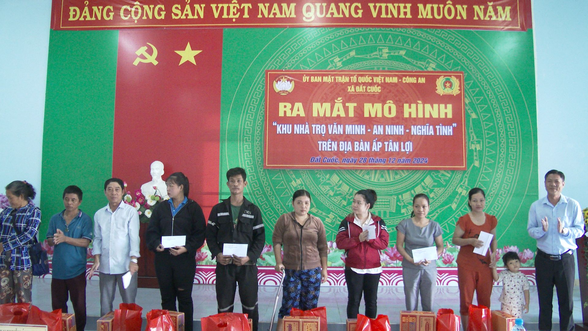 Sáng ngày 28/12, UB.MTTQ Việt Nam xã Đất Cuốc phối hợp Công an xã và Ban Công tác Mặt trận ấp Tân Lợi tổ chức lễ ra mô hình “Khu nhà trọ an ninh - văn minh - nghĩa tình” năm 2025. Tham dự lễ ra mắt có ông Nguyễn Ánh Linh - PCT. UB MTTQVN huyện; ông Nguyễn Hùng Sơn - HUV, Bí thư Đảng uỷ xã, Bà Lê Thị Thanh Thủy - CT. UB MTTQ VN xã; Chi bộ, Ban công tác Mặt trận, Ban điều hành ấp Tân Lợi và các chủ nhà trọ, người ở trọ có hoàn cảnh khó khăn trên địa bàn ấp Tân Lợi.