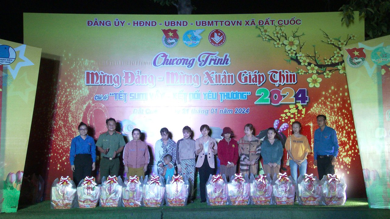 Tối ngày 21-1 tại Khu công nghiệp KSB, Đảng ủy, UBND xã Đất Cuốc tổ chức chương trình Mừng Đảng - Mừng xuân Giáp Thìn 2024 với chủ đề “Tết sum vầy - kết nối yêu thương”. Tham dự Chương trình có ông Nguyễn Hùng Sơn- HUV, Bí thư Đảng ủy xã cùng các các đồng chí lãnh đạo UBND, HĐND, trưởng các ban ngành đoàn thể và đông đảo bà con nhân dân trên địa bàn xã.
