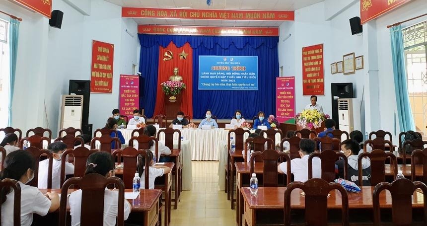 Ngày 6-6, tại trụ sở UBND xã Hiếu Liêm, Huyện Đoàn Bắc Tân Uyên phối hợp cùng Ban chỉ đạo các hoạt động Thanh Thiếu nhi xã Hiếu Liêm tổ chức Chương trình lãnh đạo Đảng, Hội đồng nhân dân chính quyền gặp thiếu nhi tiêu biểu năm 2021 chủ đề “Chung tay bảo đảm thực hiện quyền trẻ em”. Dự hội nghị có đồng chí Hồ Thị Thanh Tuyền - Phó Bí thư Huyện đoàn cùng đại diện các phòng ban, đoàn thể huyện, xã và 15 em thiếu nhi tiêu biểu đến từ các xã, thị trấn trên địa bàn huyện.