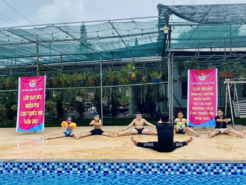 Dịp này, Huyện Đoàn Bắc Tân Uyên cũng đã tổ chức lớp tập huấn các kỹ năng bơi lội, phòng chống đuối nước, tai nạn thương tích cho 20 em thiếu nhi có hoàn cảnh khó khăn trong dịp hè.